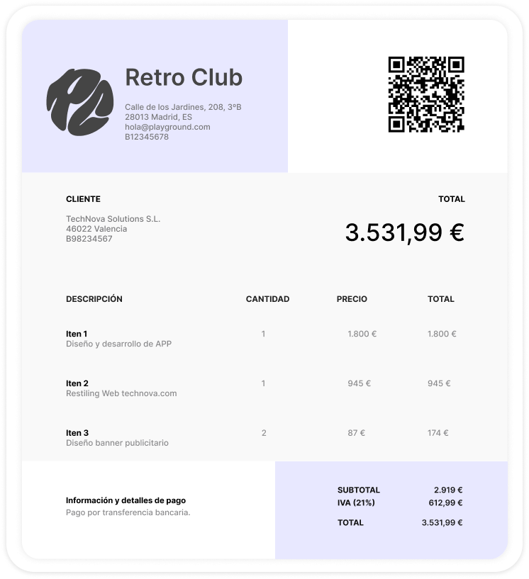 Diseños editables para tus documentos, facturas y emails. Rápidos, claros y con tu estilo.