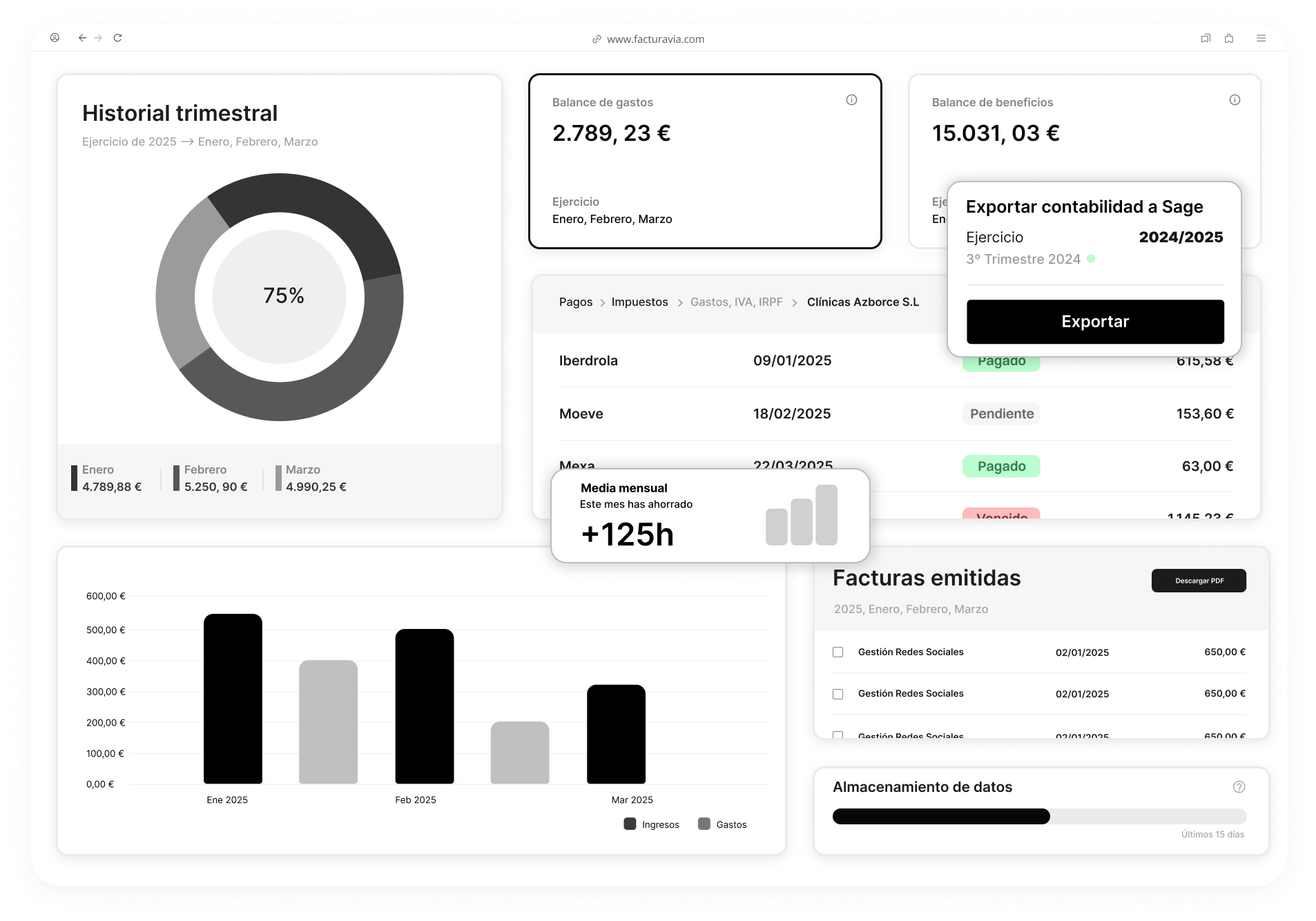 Olvídate de perseguir documentos o picar datos cada trimestre. Facturavia automatiza procesos, genera los asientos contables y te devuelve lo más valioso que tienes: el tiempo.