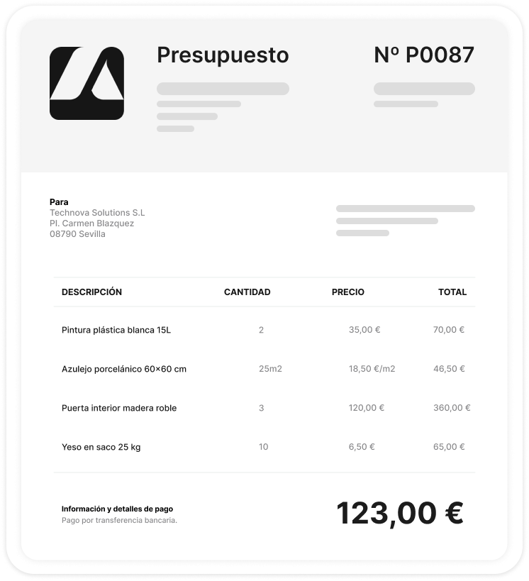 Presupuestos con tu estilo. Añade logo, colores y diseño profesional.