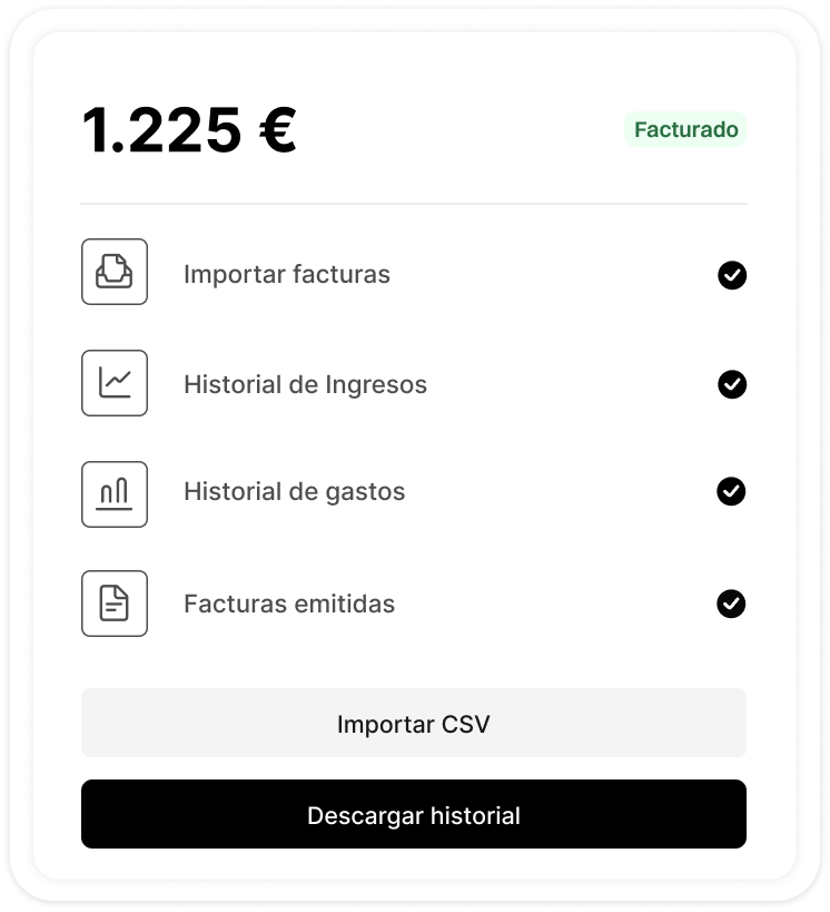 Importa tus facturas anteriores, automatiza procesos y accede al historial completo de tus ingresos. Activa recordatorios de pago, cobra más rápido y toma decisiones con datos claros.
